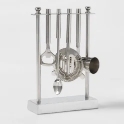 5pc Stainless Steel Bar Tool Set With Stand Silver – Thresholdâ˘: Barware Kit With Storage Case