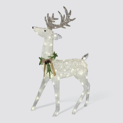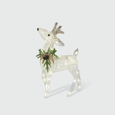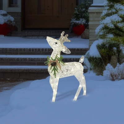 Enhance your holiday dĂ©cor with this elegant Philips LED Glitter String Fawn. Fawn is 27.4″ tall with 60 pure white LED lights with twinkle effect. White and champagne glitter finish gives this fawn a beautiful effect outdoors. Fawn is easy to set up, and includes ground stakes. Perfect for porch or yard use.