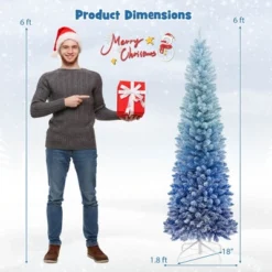 Costway 6/7 FT Blue Gradient Snow Flocked Artificial Christmas Tree With 435/725 Lush Branch Tips