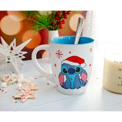 - TRENDY DRINKWARE: Fun Disney-themed mug featuring Stitch celebrating Christmas dressed as Santa!